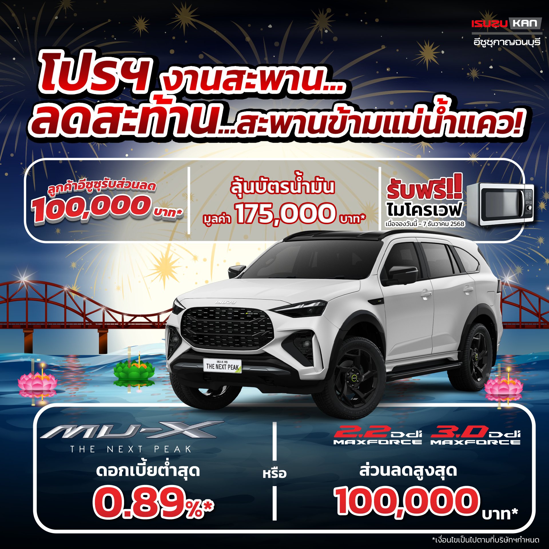 MU-X ดอกเบี้ยต้ำสุด 0.89% หรือส่วนลดสูงสุด 100,000 บาท*